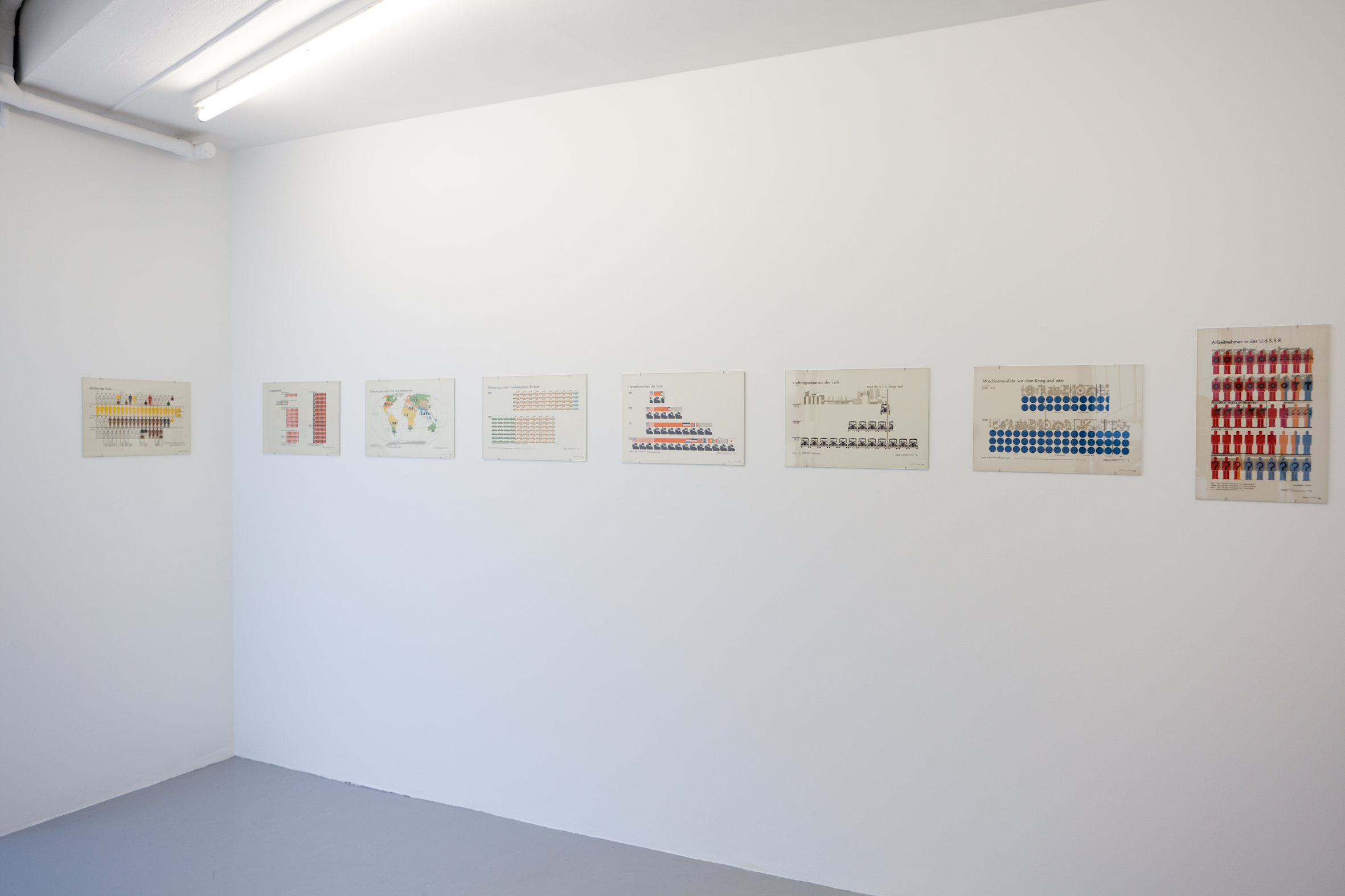 From 1926 Otto Neurath sought his collaboration in designing pictograms for the Vienna Method of Pictorial Statistics (Wiener Methode der Bildstatistik; later renamed Isotype). From the beginning of 1929 Arntz worked at the Gesellschafts- und Wirtschaftsmuseum (Social and Economic Museum) directed by Neurath in Vienna. Eventually, Arntz designed around 4000 pictograms. Between 1931 and 1934 he travelled periodically to the Soviet Union (along with Neurath) in order to help set up the ‘All-Union institute of Pictorial Statistics of Soviet Construction and Economy’ commonly abbreviated to ISOSTAT.